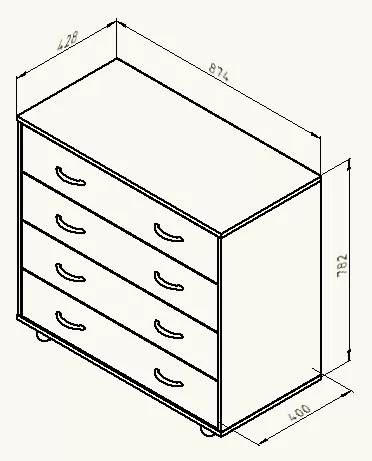 Комод станет прекрасным решением для детской комнаты. Модель содержит 4 вместительных выдвижных ящика, которые позволят удобно расположить все необходимые вещи. Данная модель может быть с успехом скомбинирована с другими предметами корпусной мебели.