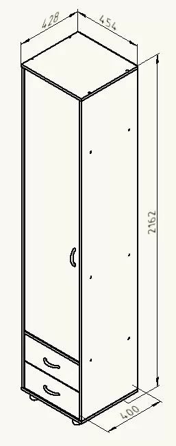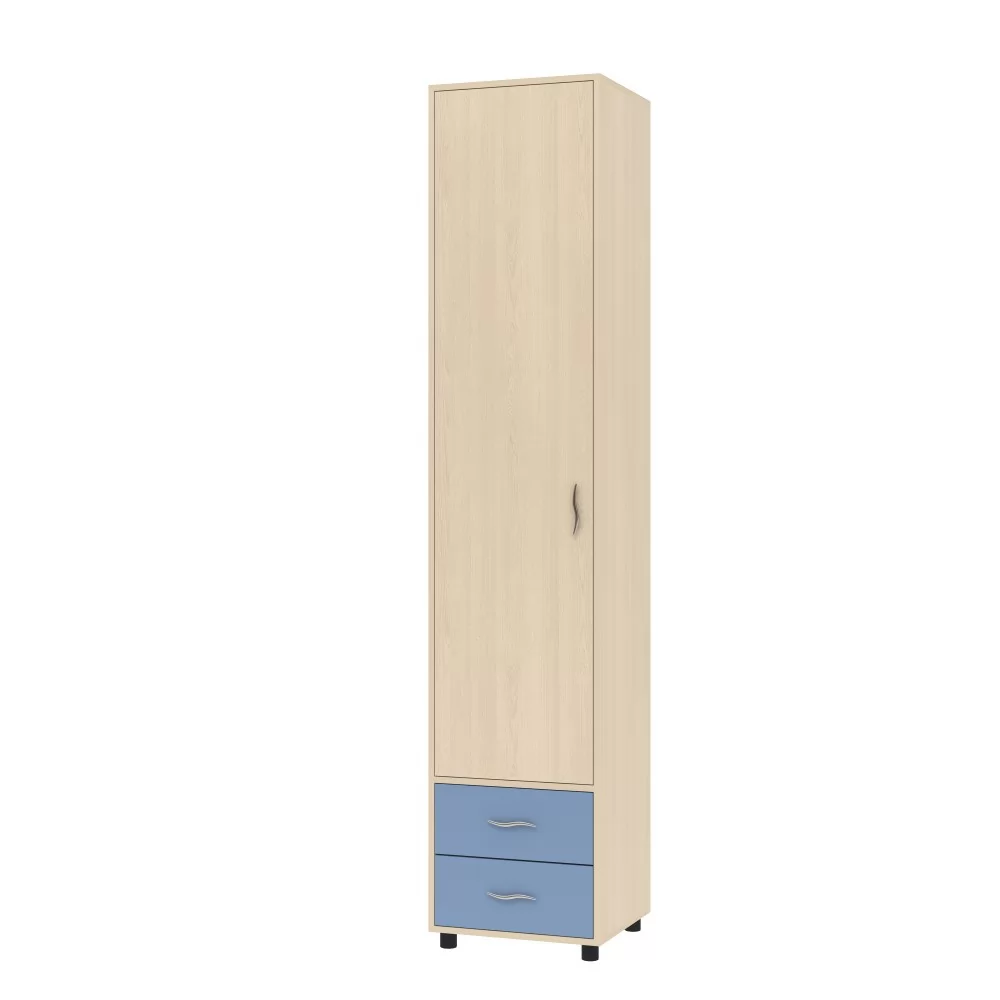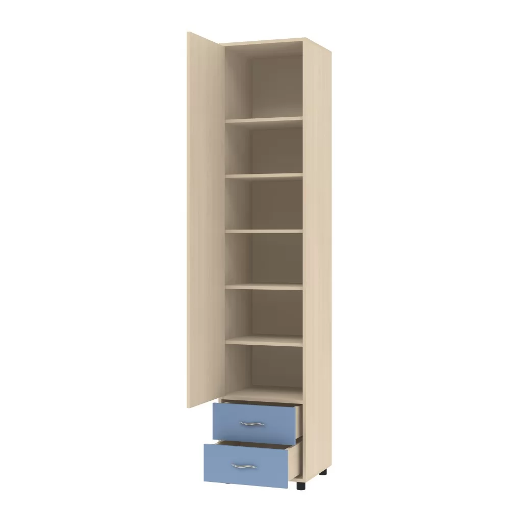 Шкаф представляет собой компактный и удобный шкаф для хранения личных вещей ребенка. Включает в себя 5полок за распашной дверцей и 2 вместительных выдвижных ящика. Лаконичный дизайн позволит данной модели отлично вписаться в любую детскую комнату. Шкаф можно собрать с открыванием двери как на правую сторону, так и на левую. Шкаф установлен на регулируемых опорах.