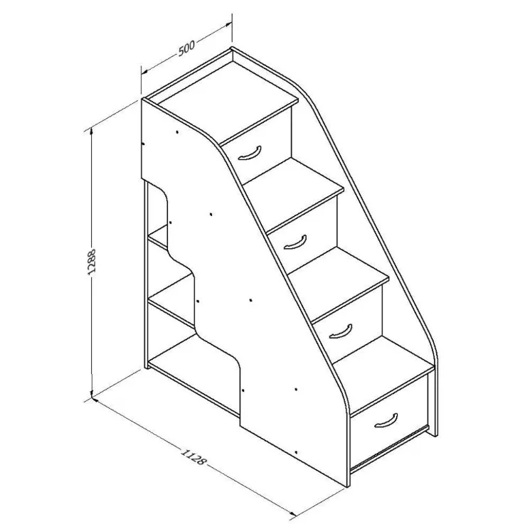 Лестница-комод "Дельта-23.2" – это функциональное дополнение к двухъярусным кроватям и модульным детским комнатам серии "Дельта". Этот компактный стильный предмет интерьера позволяет значительно сэкономить место в детской комнате, совмещая в себе функции двух элементов мебели. Надежные ступени оборудованы четырьмя вместительными выдвижными ящиками, которые можно использовать для хранения личных вещей, а также тремя открытыми полками.