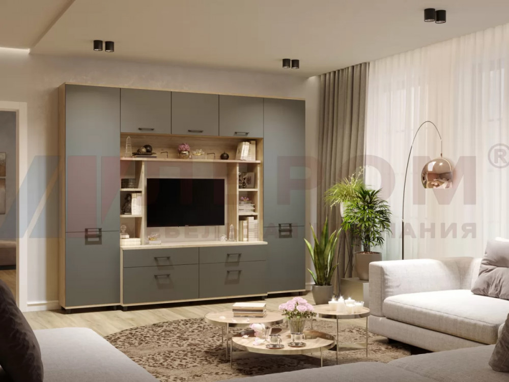 Гостиная СИДНЕЙ-2 (ш3000*г470*в2000мм), ЛДСП Белый/ЛДСП Ателье светлое