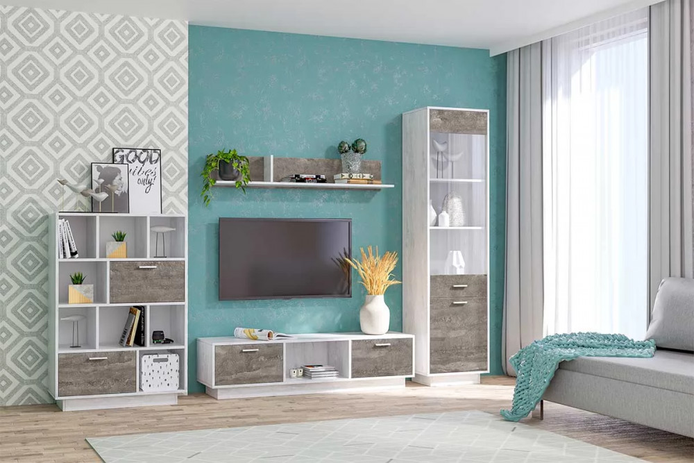 ТВ тумба Эго Т-3, бетон светлый/камень темный, цоколь 1 шт