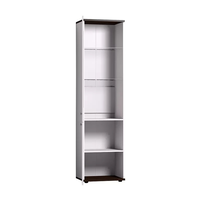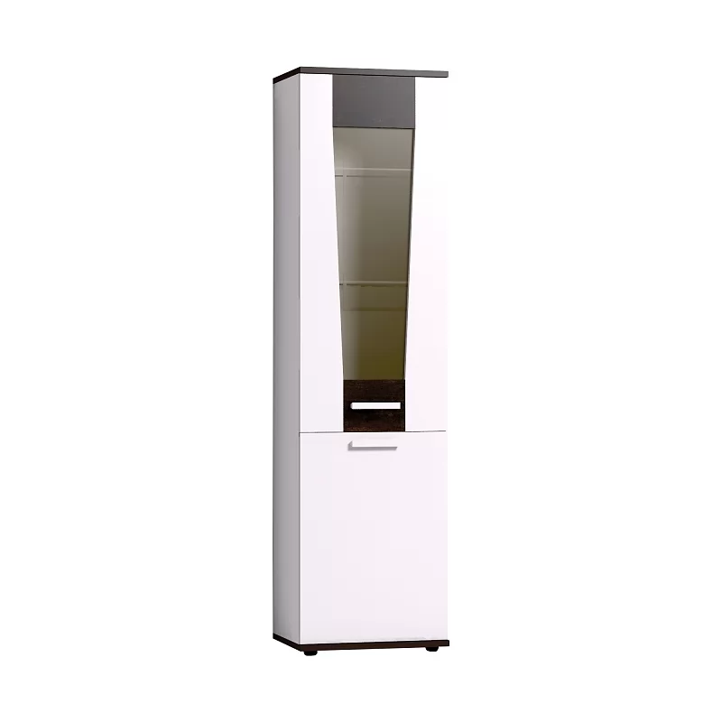 Норвуд 13 Шкаф для посуды - этот модуль создан для красивой посуды, хрупких сувениров. Высокий и узкий шкаф - пенал будет уместен в гостиной любых размеров. Фигурный фасад верхней витрины эффектно совмещает в себе тонированное стекло, ЛДСП и брашированную деревянную вставку. Стеклянные полки - из прозрачного стекла толщиной 6 мм. В нижнюю закрытую тумбу посудного шкафа можно убрать вещи, не предназначенные для посторонних глаз. Фасады шкафа перенавешиваются на левую и правую сторону.