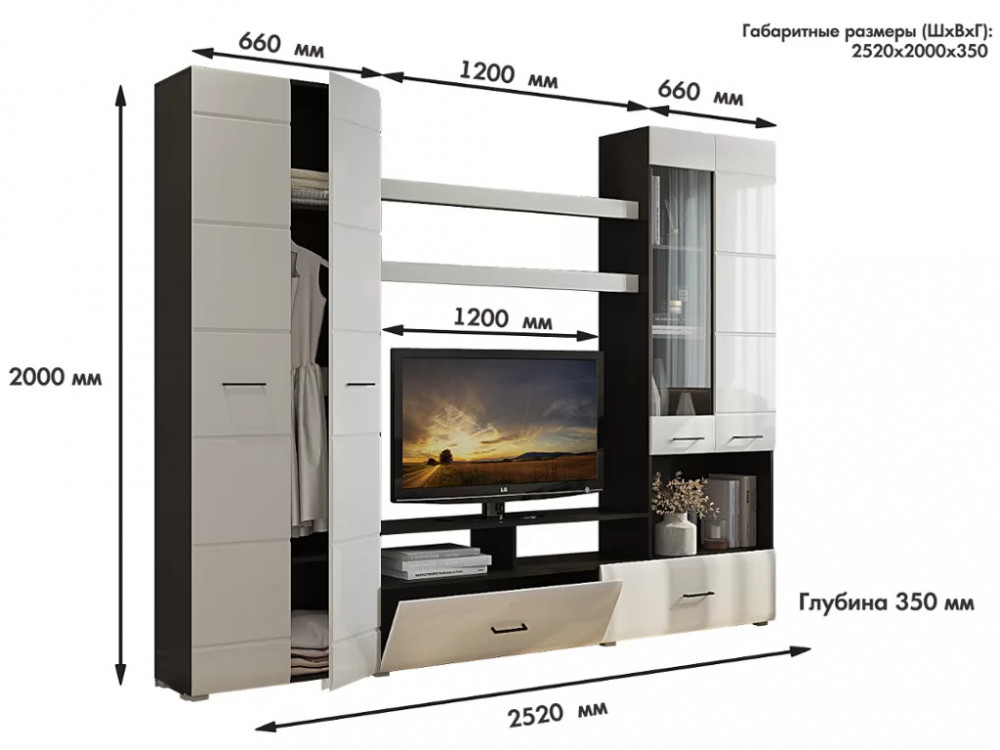 Габаритные размеры (ШхВхГ), мм: 2520х2000х350