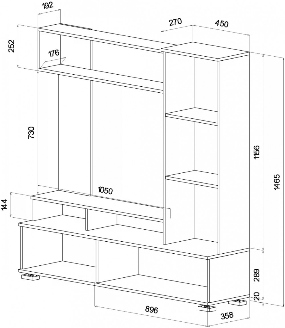 • Габариты: 1500 (ширина) х 358 (глубина) х 1465 (высота) мм.