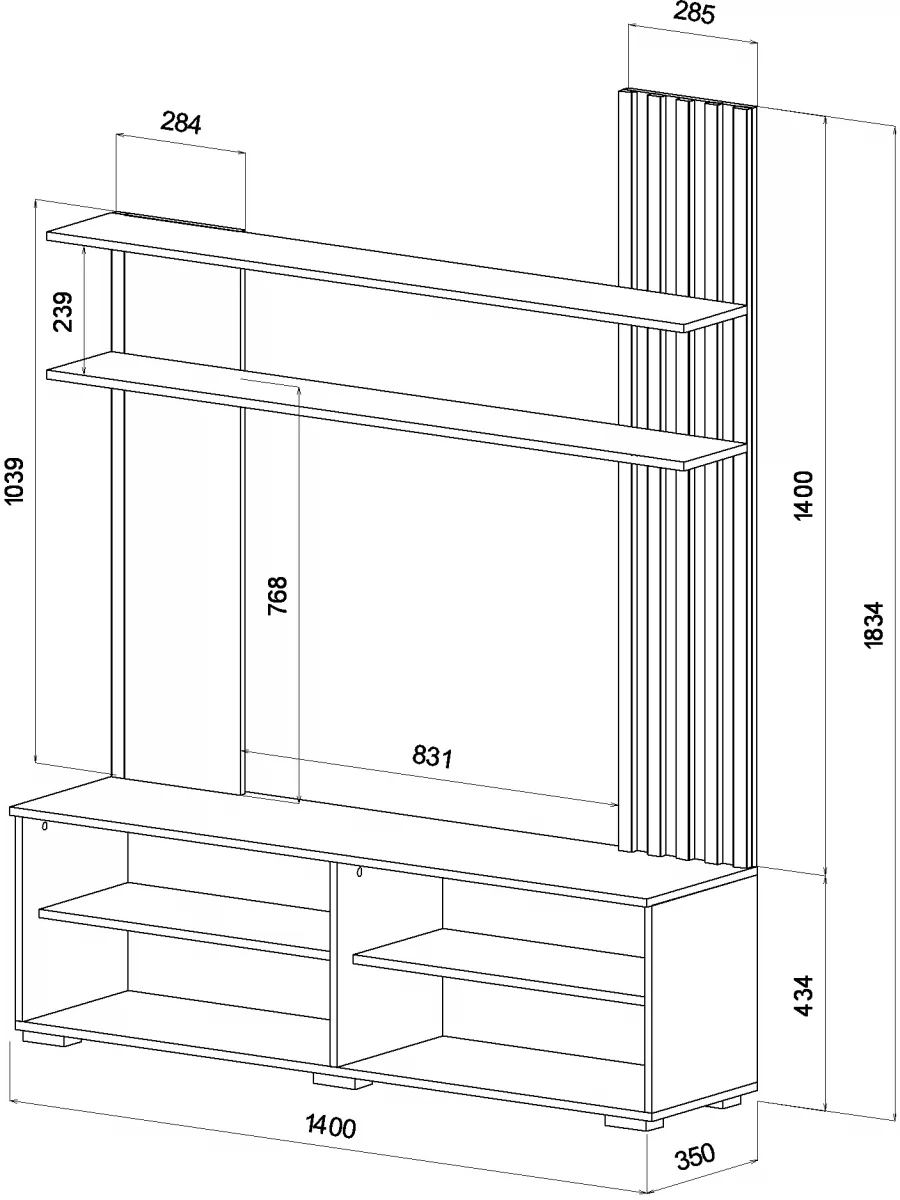 Габариты 1400(Ш) х 350(Г) х 1834(В) мм.