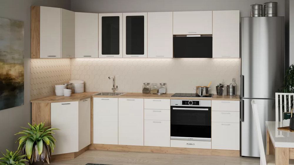 Модульная кухня «Габриэлла» Дуб крафт золотой/Крем в Нефтеюганске