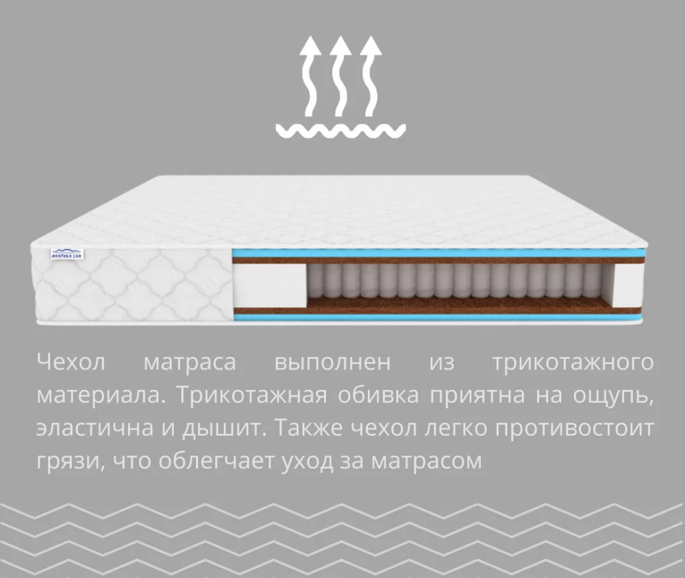 • Чехол в обивке из трикотажа: Обивка  легко снимается и стирается, что облегчает уход за матрасом.