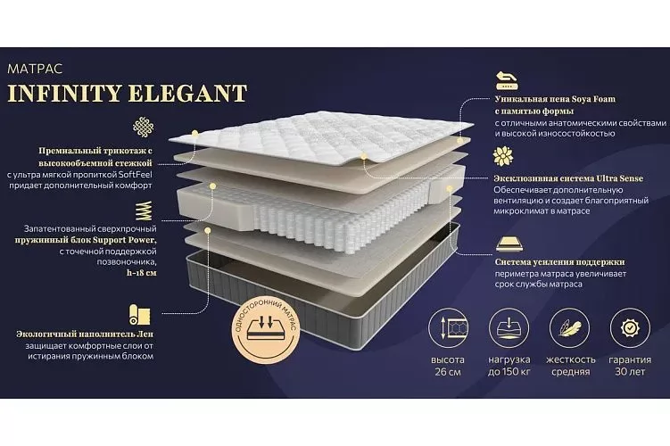 Матрас INFINITY ELEGANT 1600*2000мм (Пена/лен, ср.жесткий, h 26см)
