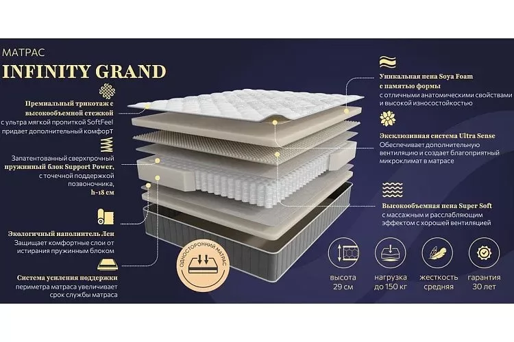 Матрас INFINITY GRAND 1200*2000мм (Пена/лен, ср.жесткий, h 29см) в Нефтеюганске