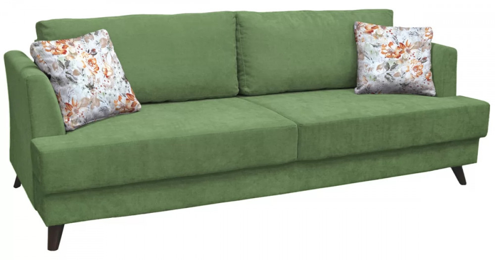 Лаконичный и элегантный диван легко впишется в любой современный интерьер. Из нескольких вариантов обивки вы легко сможете подобрать цветовое решение, подходящее именно вам. Высокие подлокотники и декоративные подушки обеспечивают комфортную посадку.