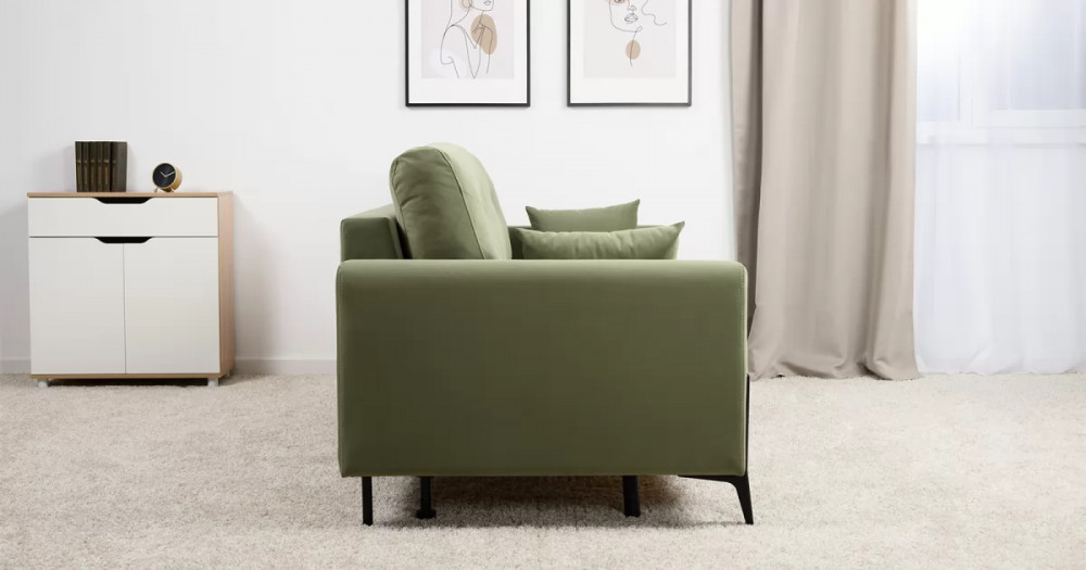 • Металлические опоры плавно переходят в декоративный элемент подлокотника. Декоративная утяжка по приспинным подушкам