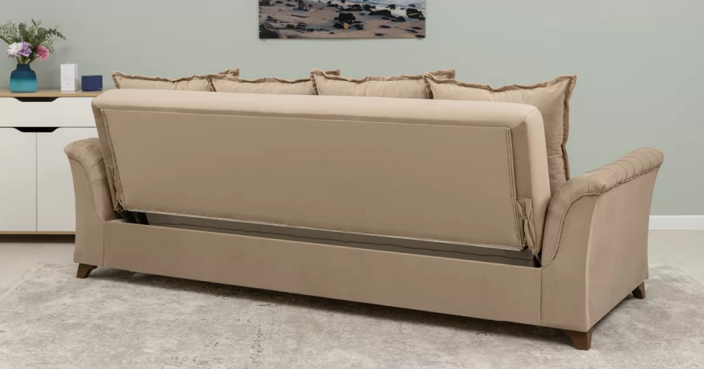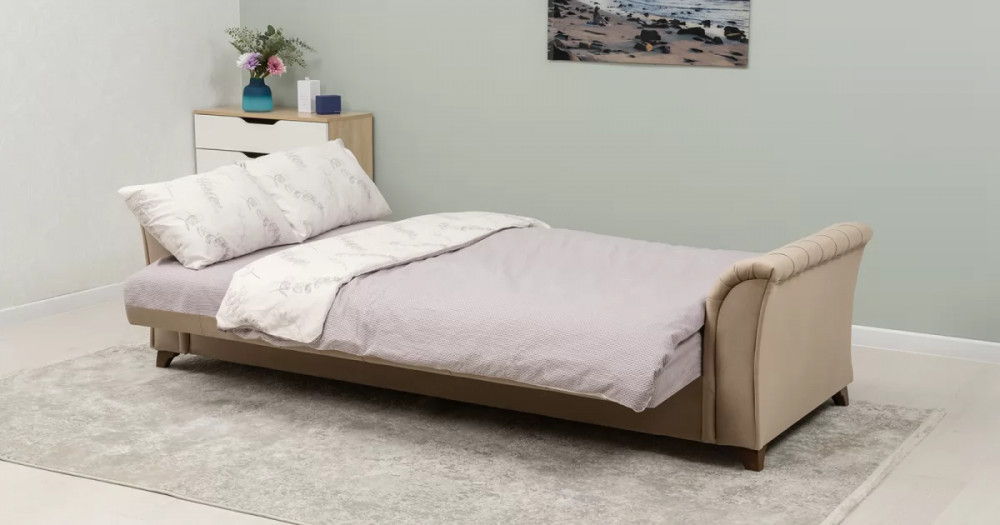 Габаритысложенный (Д x Г х В, мм): 2450 x 1060 x 890спальное место (Д x Ш, мм): 1950 x 1310высота посадки (мм): 460глубина сиденья (мм): 540максимально допустимая нагрузка: 80 кг на одно посадочное место, 100 кг на одно спальное местоМеханизм трансформации-Книжка с 0 стенойБельевой ящик-есть  перегородкой по центру (2 отделения)размер отделения (Д x Ш, мм): 890 x 840 x 200каркас: фанерадеревянный брус