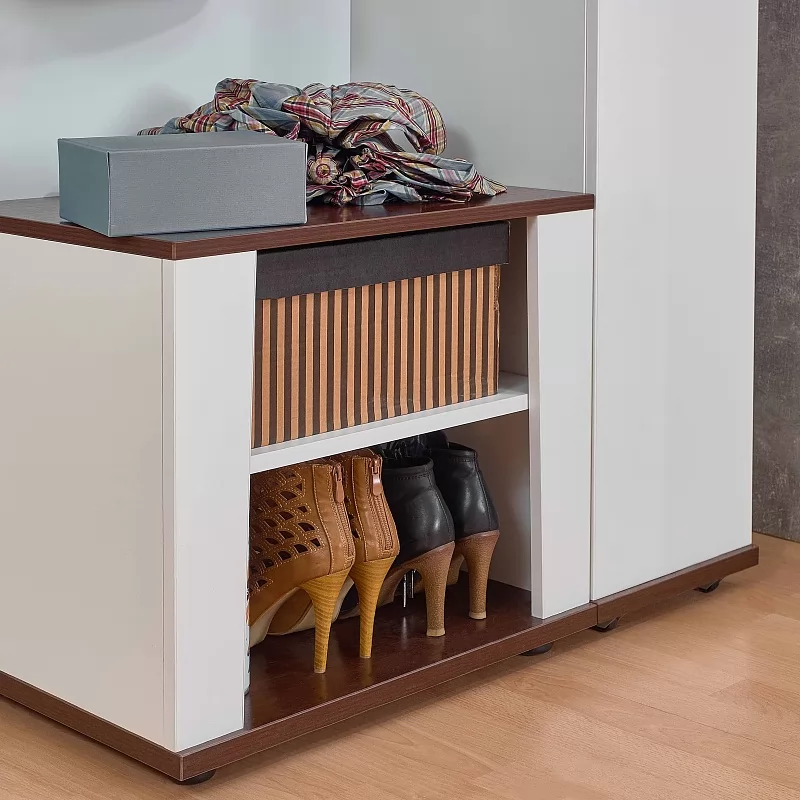 Модуль Норвуд 74 просто создан для небольшой прихожей. Вешалка с двумя крючками, стационарной штангой и открытой нишей сможет разместить сезонную одежду небольшой семьи. Контрастные темные горизонтальные детали в декоре Орех Шоколадный, брашированная вставка из дерева - отличительные особенности коллекции Норвуд. Модуль рекомендуем крепить к стене с помощью подвесов.