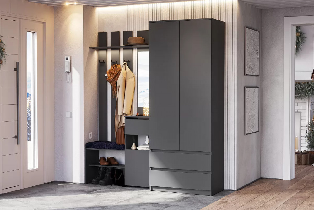 Вешалка с зеркалом графит серый Денвер в Нефтеюганске