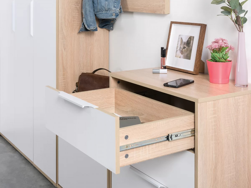 Модный минималистичный дизайн и улучшенная функциональность каждого модуля - все это присутствует в коллекции для прихожей "Куба". В коллеции продумана любая мелочь. Модули нестандарной конструкции не оставят без внимания узкие углы, повышая вместимость прихожей. Дизайнерская фурнитура идеально соответствует формам модулей. Большой выбор модулей позволяет создать лаконичные комбинации или объемные системы хранения в прихожей - каждый сможет выбрать свой вариант.