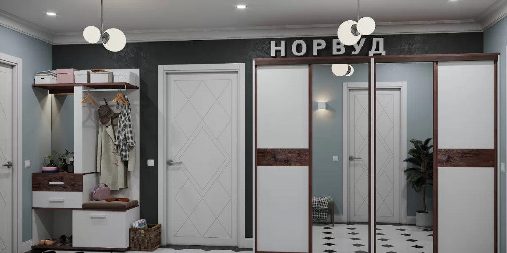 Гибкая линейка прихожей Норвуд позволяет найти множество изобретательных способов задействовать даже самое скромное пространство, что особенно уместно в крошечных входных зонах. В прихожей Норвуд Белый декор используется в качестве основного цвета. При этом помещение не будет выглядеть просто, так как в дизайне модулей Норвуд используются контрастные горизонтальные поверхности и брашированные деревянные вставки в декоре Орех Шоколадный. Выразительное сочетание актуальных декоров не останется незамеченным и привнесет теплоту в атмосферу вашего дома. Деревянные брашированные вставки в декоре Орех Шоколадный покрыты лаком, который подчеркивает рельефную структуру поверхности.