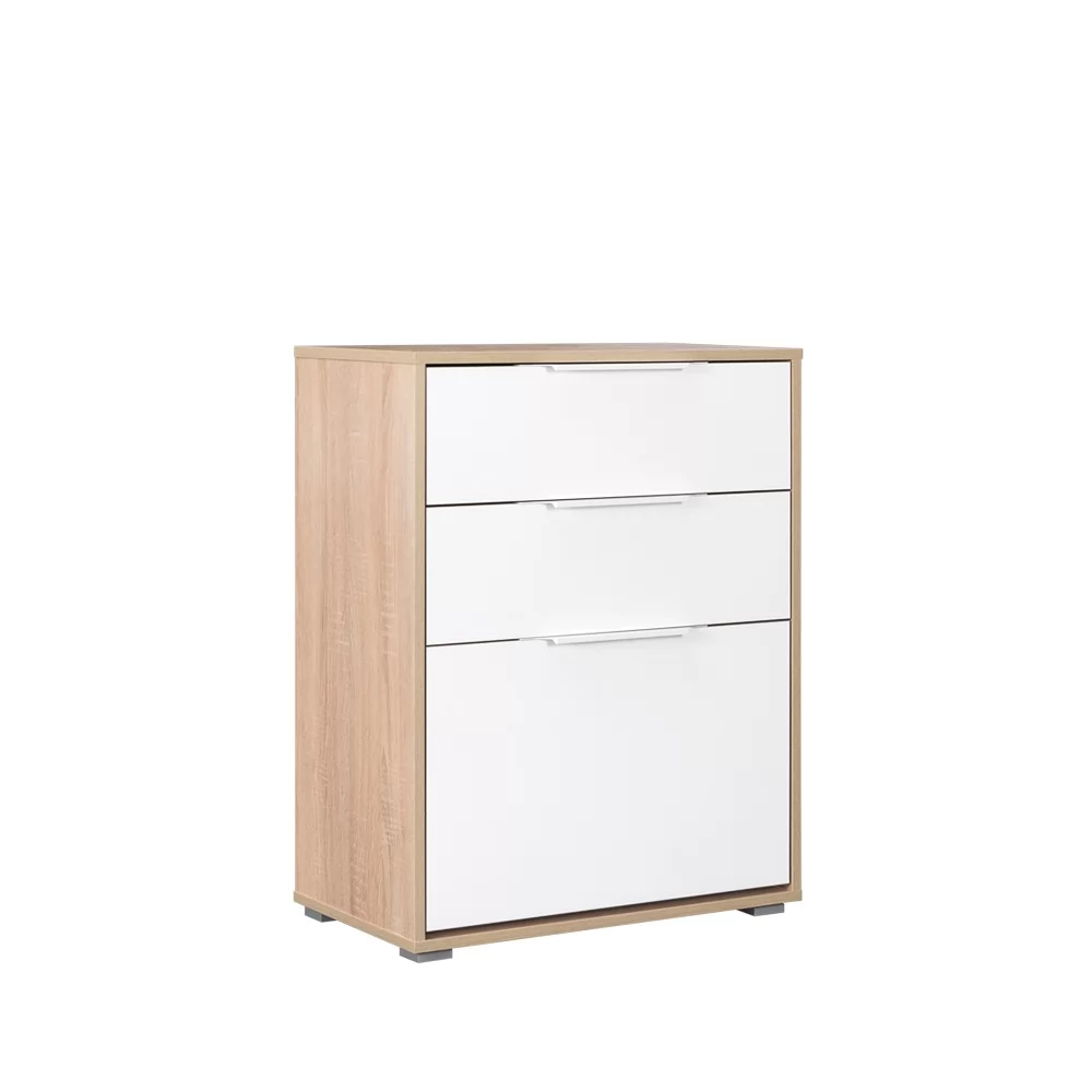 Универсальная тумба-комод "Куба" оснащена откидной обувницей и двумя выдвижными ящиками для аксессуаров и других мелочей
