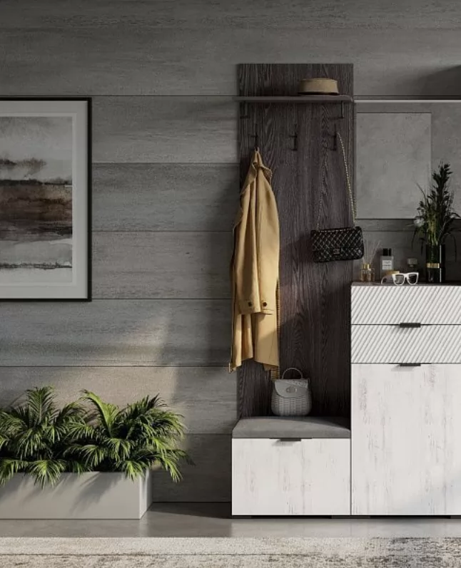 Новые современные цвета: черный ясень - глубокий серый, легкий и одновременно динамичный цвет в сочетании с санторини белым - цвет с древесными линиями, создающими гармоничный контраст. Визуальная легкость, эстетика графики, элегантная окантовка с четкими формами, баланс теплых и холодных оттенков легли в основу дизайна новых модулей.