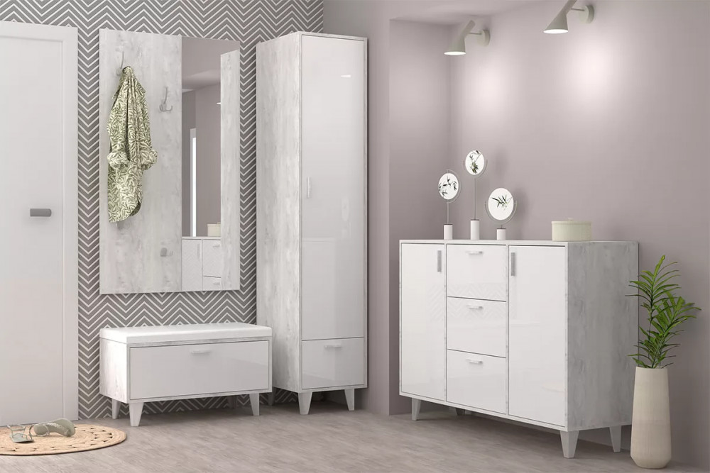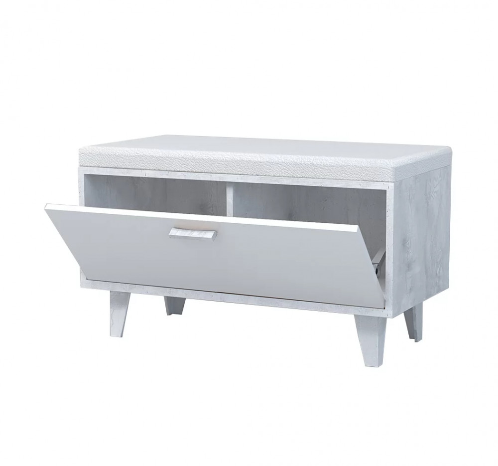 Высота, мм — 466 Ширина, мм — 800 Глубина, мм — 404 Материал корпуса — ЛДСП Материал фасада — ЛДСП Цвет корпуса — Бетон светлый Цвет фасада — Белый глянец Количество дверей - 1 Материал сиденья - Экокожа Цвет обивки - Белый глянец