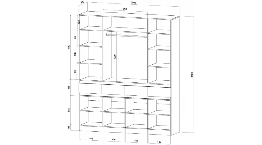 *Размеры (Ш*Г*В), мм:2000*520*2400 мм