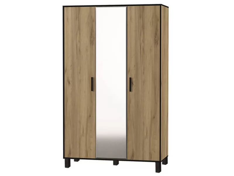 Ширина (мм): 1300 Высота (мм): 2100 Глубина (мм): 550 Цвет: Дуб крафт золотой/Черный Материал: ЛДСП/Зеркало Вес, кг: 119 Объем, м3: 0.2 Корпус — ЛДСП 16 мм Кромка ПВХ 0.4 мм Кромка ПВХ 2 мм Зеркало с фацетом Ручки — черный пластик Дверцы с доводчиком Опоры — черный металл (ФМС) Размер зеркала: 1950х410 мм Возможно исполнение с разными типами опор