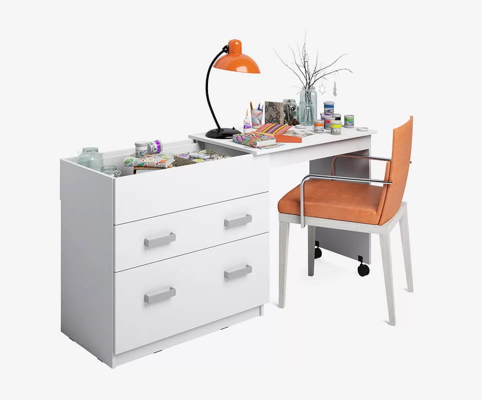 Комод-трансформер "Для увлечений" с выдвижной столешницей и дополнительным ящиком. Высота, как у обычного стола - 750 мм. Удобный вариант для небольших квартир - для комфортной работы за ноутбуком и занятий рисованием или рукоделием, в детскую.