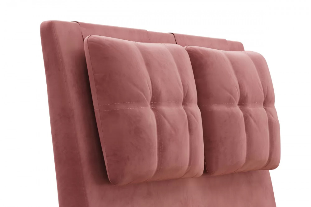 Кровати выполнены в нейтральных и в ярких тканях велюр, что позволяет подобрать подходящий вариант почти под любой интерьер. В качестве декора применяются декоративные подушки на изголовье.