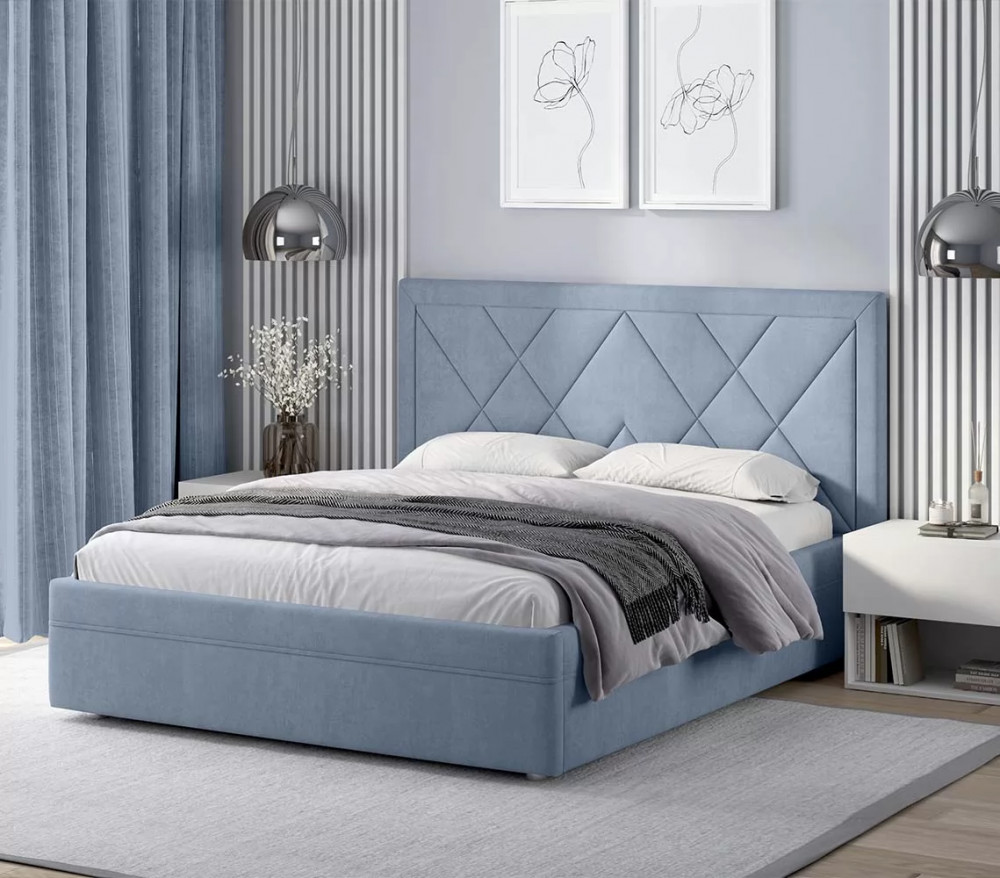 Эксклюзивная модель с мягким изголовьем, украшенным трендовым геометрическим дизайном. Такая модель на сегодняшний день пользуется большой популярностью у покупателей. Обладает всеми основными преимуществами, которые присутствуют у популярных моделей Marta и Jessica, т.е.: полный набор доступных опций, малый и большой ортопедический настил, сплошной настил из ЛДСП, комплектация подъемным механизмом.