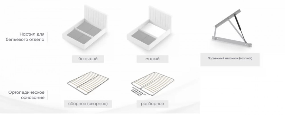ОснованиеОснование ортопедическое разборное, Настил напольный ЛДСП (большой), Настил напольный ЛДСП (малый), Основание ортопедическое сборное