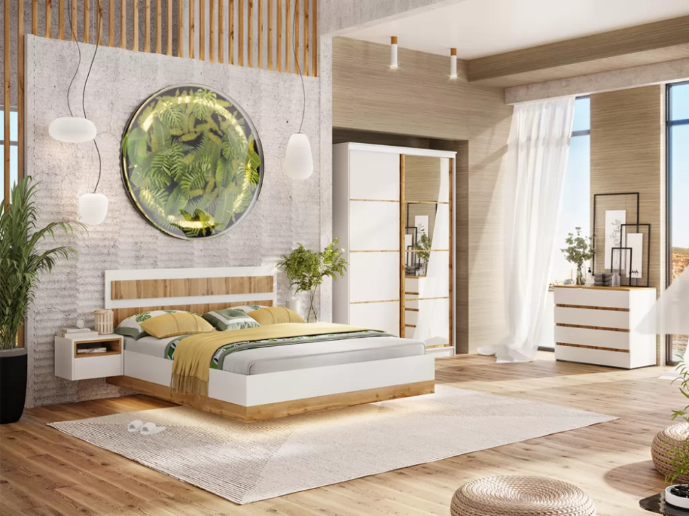 Спальный гарнитур Дубай Белый жемчуг/Дуб Вотан в Нефтеюганске