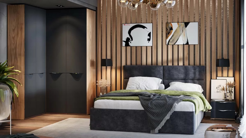 Спальный гарнитур «Глосс» №9 Яблоня Беллуно, Стекло Графит матовый в Нефтеюганске