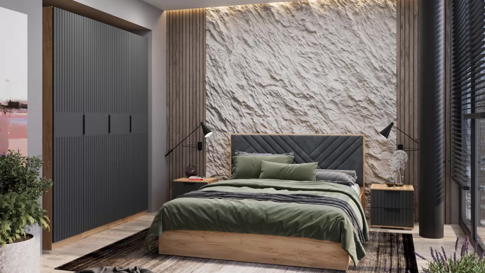 Спальный гарнитур «Хилтон» №2 Дуб Крафт золотой, Графит матовый в Нефтеюганске