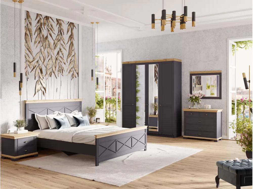 Спальный гарнитур Лиана-1 Дуб Крафт Золотой/Графит в Нефтеюганске