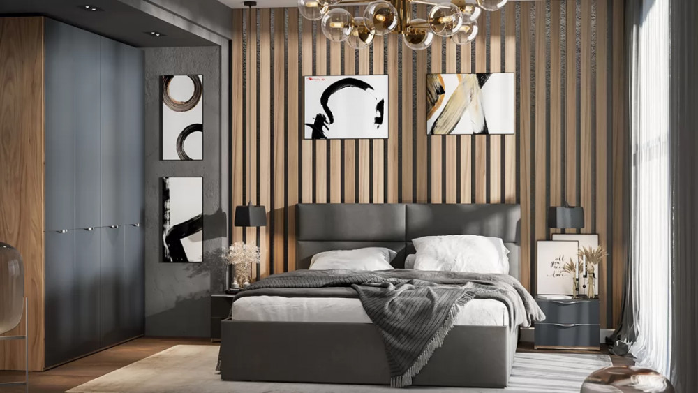 Спальня «Глосс» Яблоня Беллуно/Cтекло Графит матовый в Нефтеюганске