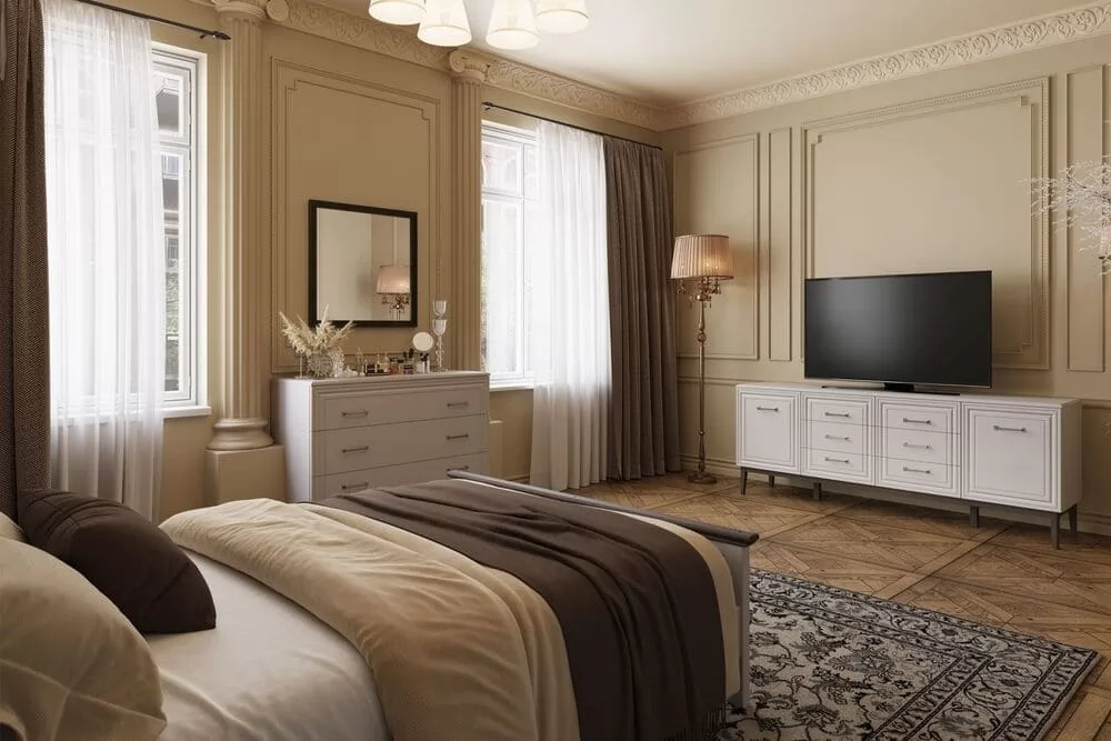 Спальня модульная Гориция Персидский жемчуг/Лак Льняной в Нефтеюганске