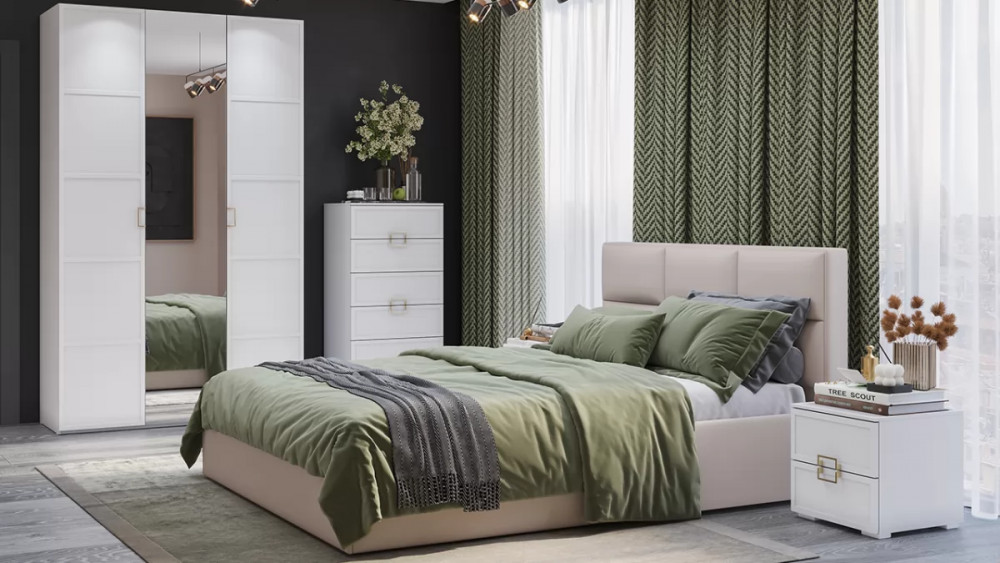 Спальня «Стелла» Белый холст, Белый Жемчуг в Нефтеюганске